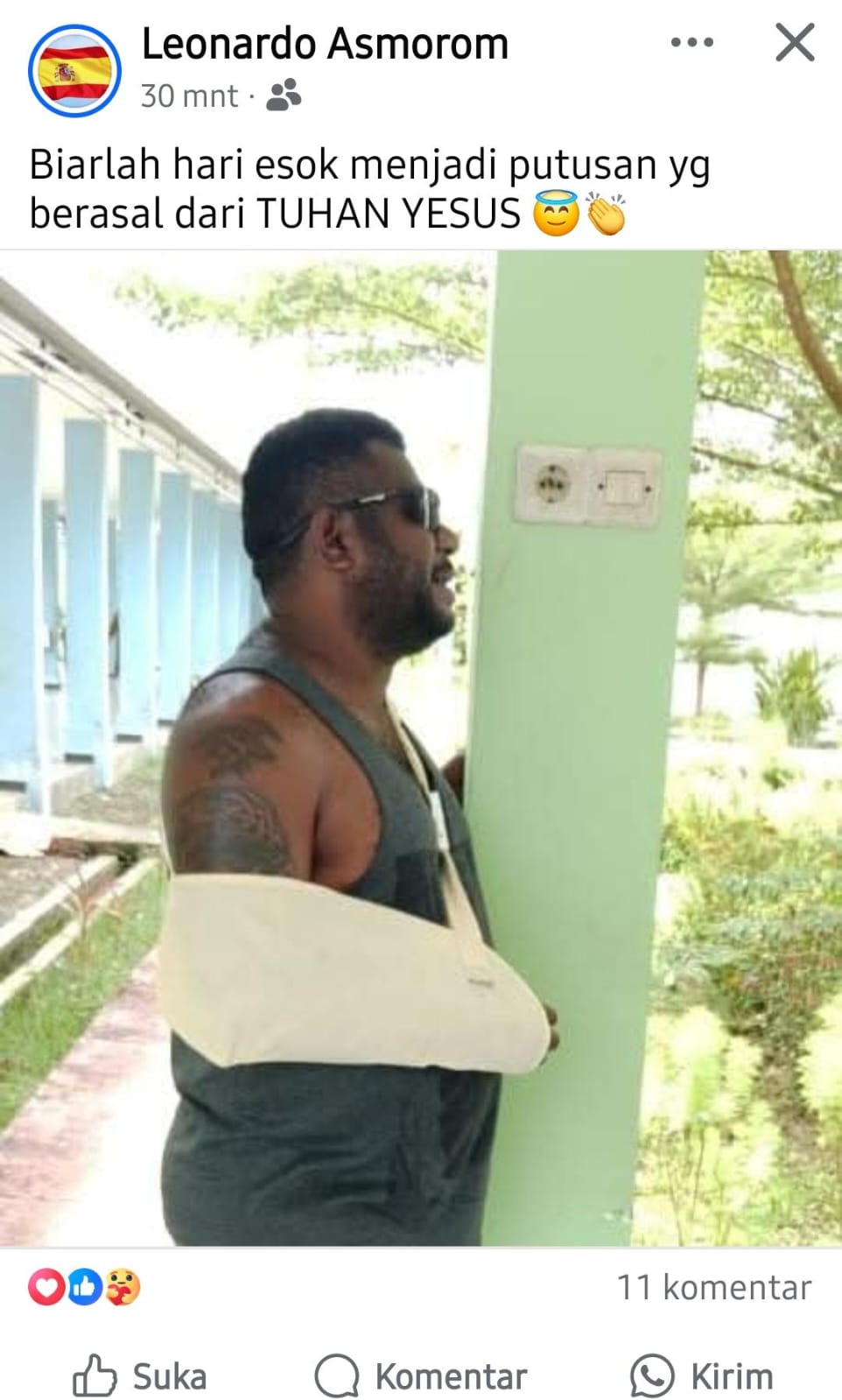 Manokwari, Jerat Fakta – Kejadian mengejutkan terjadi menjelang pembacaan putusan dalam perkara pidana yang melibatkan Terdakwa Leonard Fredz Asmorom (LFA), warga Rumah Tahanan (Rutan) Teluk Bintuni. Pasalnya, LFA diketahui sempat mengunggah status melalui akun media sosial pribadinya sehari sebelum sidang putusan digelar di Pengadilan Negeri Manokwari Kelas I A, Senin (21/7/2025).