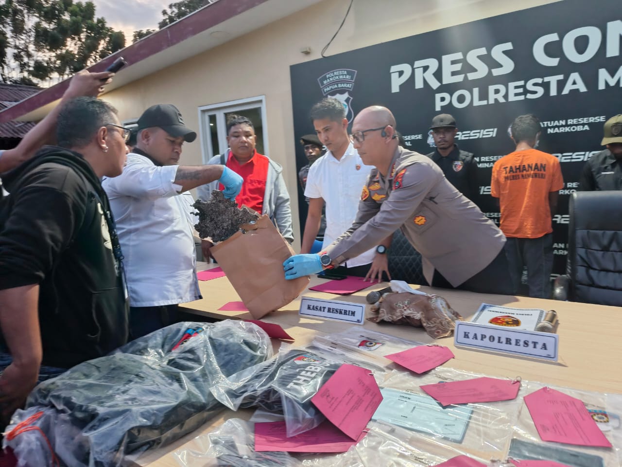 Kapolresta Manokwari Kombes Pol Ongky Isgunawan, SIK menjelaskan kronologi kasus ini dalam konferensi pers di Mapolresta Manokwari, Rabu (12/11/2025).