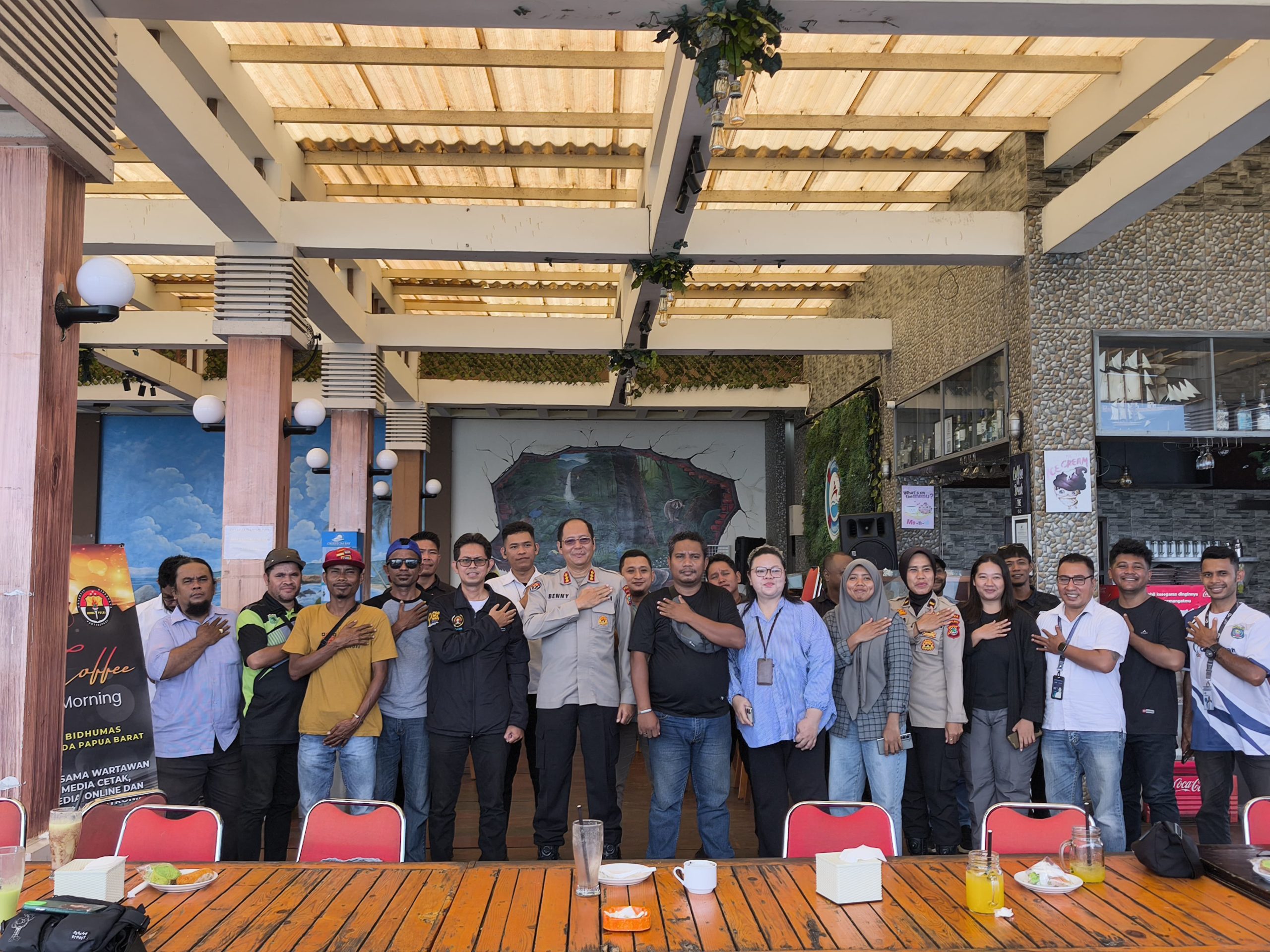 Jerat Fakta | Manokwari,Papua Barat -Dalam rangka mempererat kemitraan dan membangun komunikasi yang lebih terbuka bersama insan pers, Bidang Humas Polda Papua Barat menggelar kegiatan Coffee Morning bersama para wartawan dari berbagai media hukum & kriminal (hukrim) di Papua Barat, Jumat (28/11/25) di cafe Oriestom Manokwari.