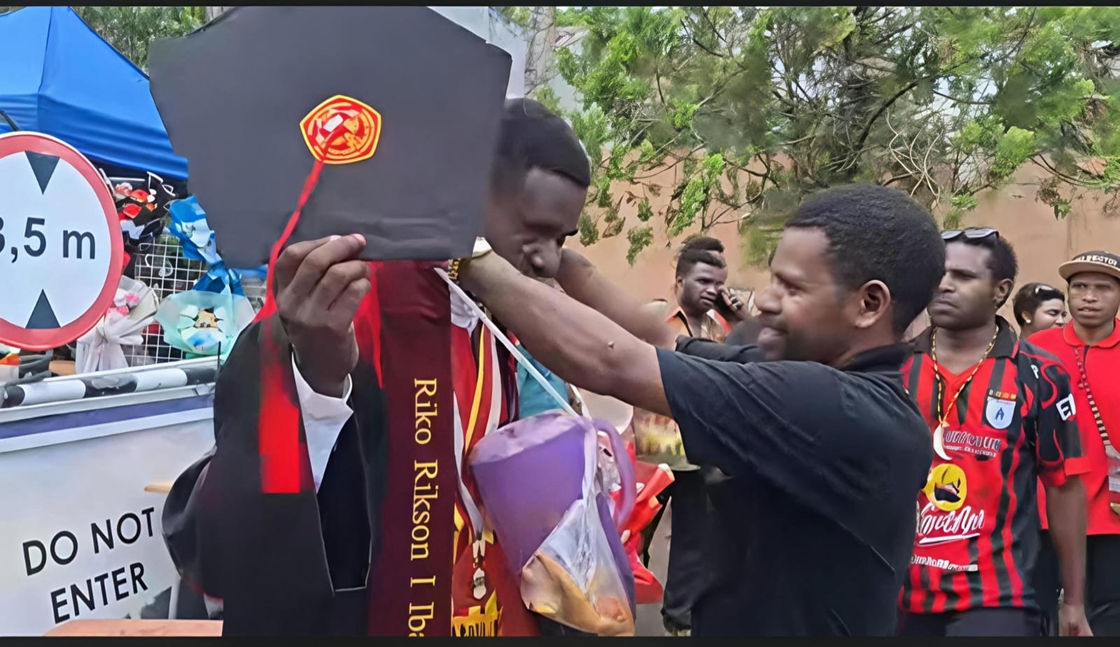 Jerat FaktaManokwari | Sebuah momen unik dan penuh makna mewarnai prosesi wisuda di Sekolah Tinggi Ilmu Hukum Manokwari. Pengalungan kopi dan gorengan menjadi simbol sederhana namun sarat arti dari perjuangan hidup seorang mahasiswa dalam menempuh pendidikan tinggi.